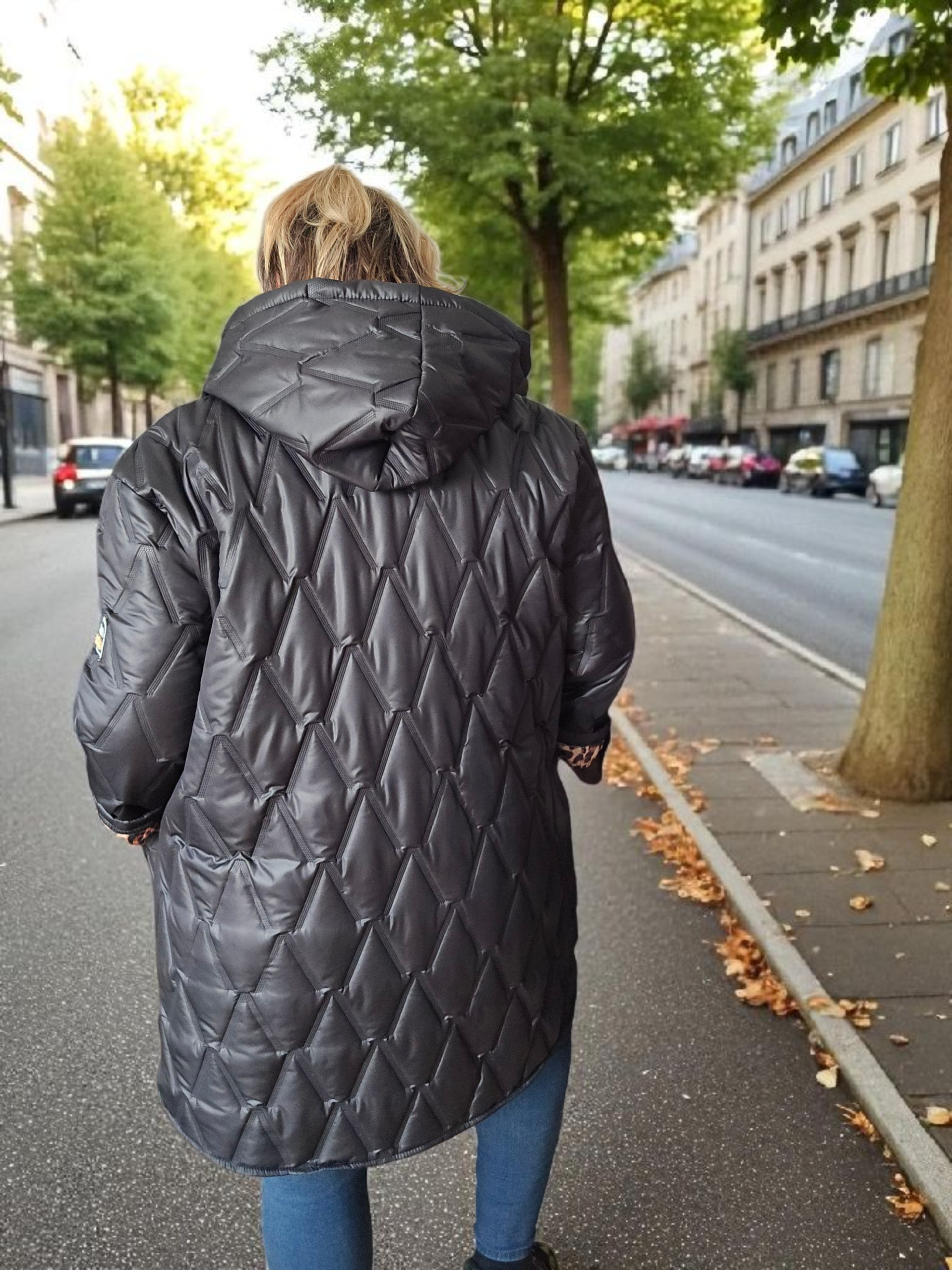 - Doublure imprimée léopard (cuffs et capuche) pour une touche sauvage et chic 🐆