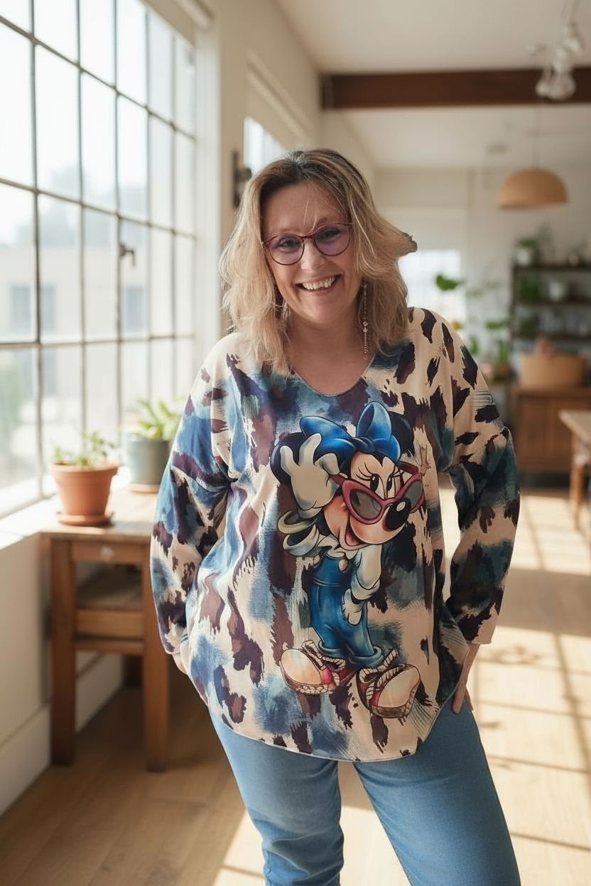 Avec son imprimé Minnie Mouse en version moderne et expressive, ce top attire tous les regards. Parfait pour celles et ceux qui aiment mêler pop culture et mode contemporaine.